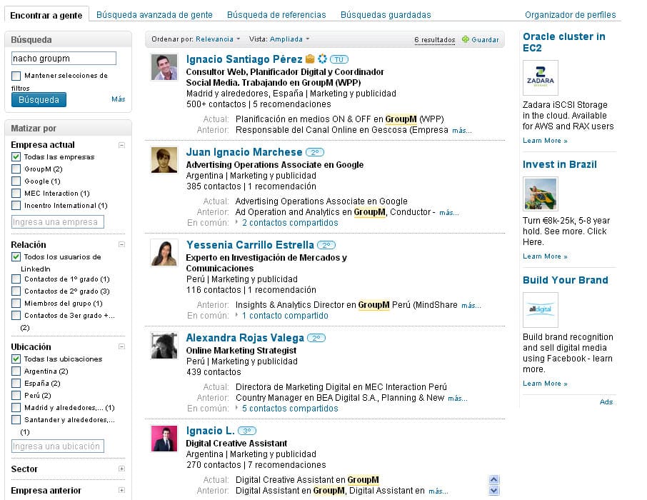 Imagínate que me estás buscando, y no te acuerdas que mi nombre es Ignacio. Tú te acuerdas que todo el mundo me llama Nacho y que un día te dije que trabajado en GroupM. Entonces buscas “Nacho GroupM” y esto es lo que sale: